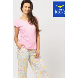 Dámske bavlnené pyžamo. Ideálne na leto, tričko s krátkym rukávom, nohavice pod kolená s farebnou potlačou.