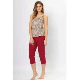 Dámske pyžamo z vysoko kvalitnej bavlny. Vzorované tričko s úzkymi ramienkami doplnené nohavicami v rybárskom štýle.