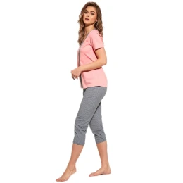 Dámské pyžamo 445/227 plus Cornette - bavlněný materiál je poddajný a jemný na dotek - růžové tričko s krátkými rukávy - pohodlné tříčtvrteční kalhoty - pyžamo je vhodné i na denní nošení