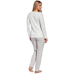 Dámské pyžamo 655/362 Today CORNETTE - z vysoce kvalitní a na dotyk příjemné bavlny - krémové tričko s dlouhými rukávy - na přední straně ozdobené potiskem - dlouhé vzorované kalhoty