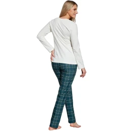 Dámské pyžamo 763/350 Nelly CORNETTE - z vysoce kvalitní a na dotyk příjemné bavlny - krémové tričko s dlouhými rukávy - dlouhé kárované kalhoty