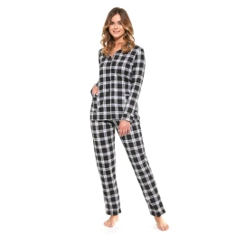 Dámské pyžamo 482/321 Tiffany CORNETTE - bavlněný materiál je poddajný a jemný na dotek - černá košile s dlouhými rukávy a kapsami - zapínání na knoflíky - dlouhé černé kalhoty - s bílým kárem