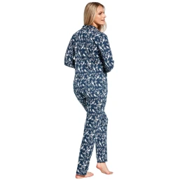 Dámské vzorované pyžamo 482/365 Jane CORNETTE - bavlněný materiál je poddajný a jemný na dotek - tmavě modrá košile s dlouhými rukávy a kapsami - zapínání na knoflíky - dlouhé modré kalhoty - s potiskemMateriálové složení: 100% bavlna