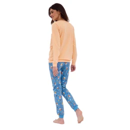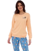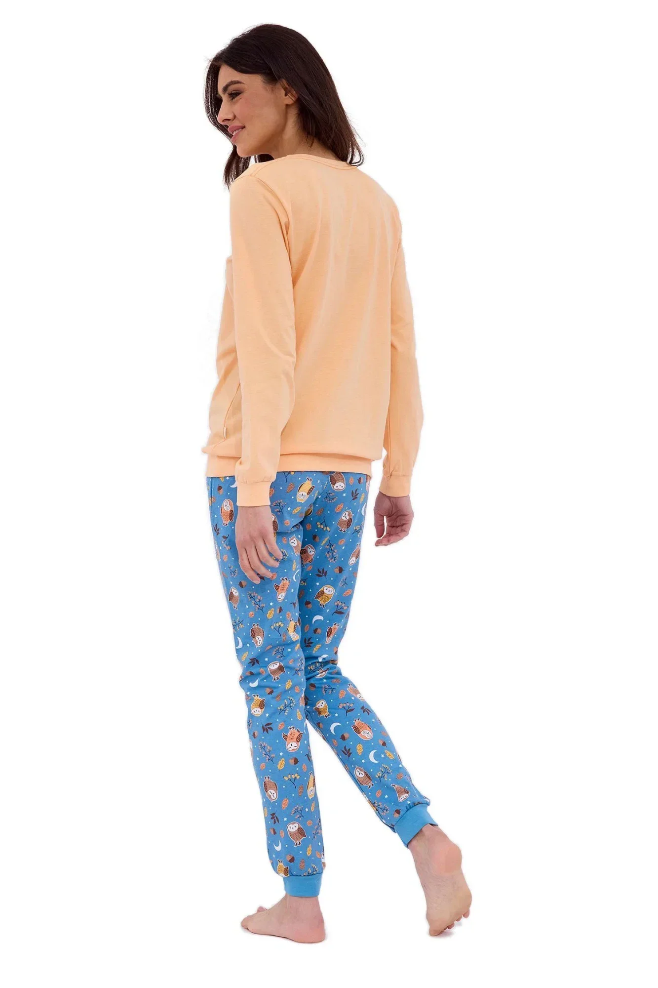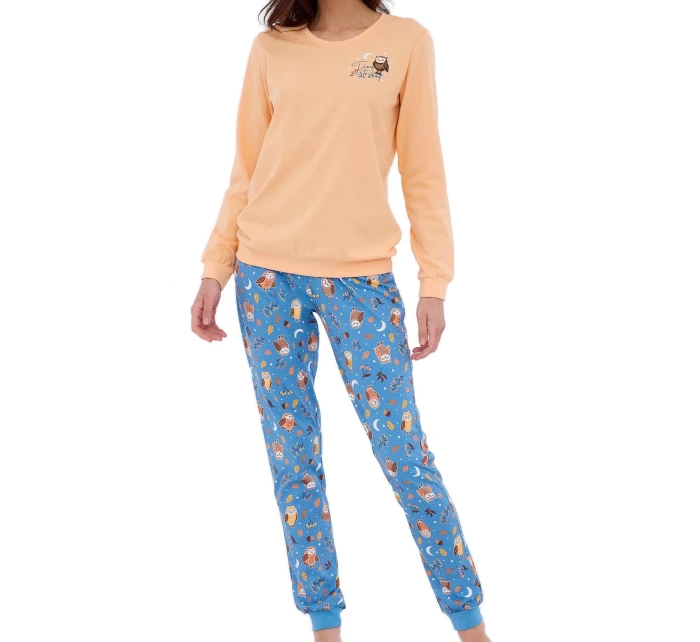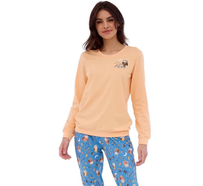 Dámské pyžamo 467/373 Owls CORNETTE - z vysoce jakostní bavlny - oranžové tričko s dlouhými rukávy - na přední straně zdobené potiskem - dlouhé vzorované kalhoty - v pase guma - pyžamo je vhodné i na denní nošeníMateriálové složení: 100% bavlna