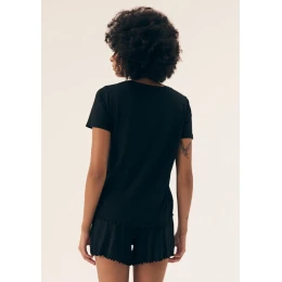 Dopřejte si maximální pohodlí s černým pyžamem Henderson. Tento dvoudílný set tvoří tričko s krátkým rukávem a pohodlné šortky s jemným řasením. Pyžamo je vyrobené z hebkého a prodyšného materiálu, který zajišťuje komfort během spánku i odpočinku. Černá barva podtrhuje elegantní vzhled a univerzálnost. Ideální volba pro pohodové večery doma.