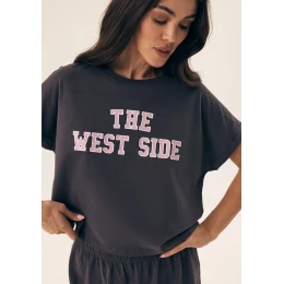 Dámské pyžamo od značky Esotiq v nadčasovém stylu pro všechny, kdo zakládají na každodenním pohodlí. Pyžamo se skládá z kratšího trička a šortek, které spolu tvoří pohodlný a stylový komplet ideální na spaní i domácí pohodu. Tričko s krátkým rukávem má na přední straně pogumovaný nápis, šortky jsou v pase na pohodlnou pružnou gumu. Díky bavlněnému materiálu je pyžamo velmi měkké a příjemné na dotek.