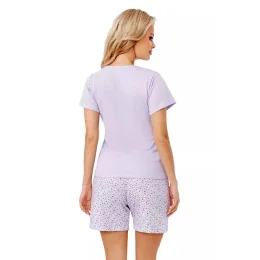 Dámské pyžamo Fiorella 1/2 Donna - z vysoce jakostní bavlny - fialové tričko s krátkými rukávy - vzorované kraťasy