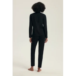 Ta czarna piżama łączy minimalistyczny design z głębokim przekazem i funkcjonalnością – doskonała zarówno na chłodniejsze noce, jak i na prezent dla bliskiej osoby.