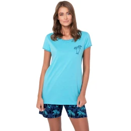 Dámske pyžamo Paleros turquise ITALIAN FASHION - vyrobené z veľmi kvalitnej a príjemnej bavlny - tyrkysové tričko s krátkymi rukávmi - s potlačou na prednej strane - vzorované kraťasy - s vreckami