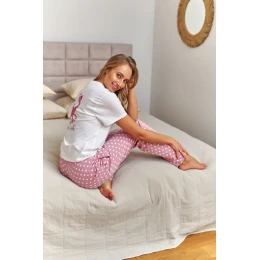 Dámske pyžamo PM.7456 značky DR NAP je štýlový a pohodlný návrh vytvorený pre ženy, ktoré ocenia pohodlie, jemnú ženskosť a originálne detaily v domácom štýle. Model bude ideálny na spanie, ako aj na módne domáce oblečenie na pokojné rána a večerný relax.