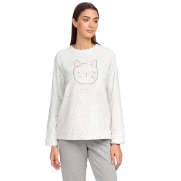 Dámske pyžamo s nášivkou mačky 15234 - 473 Šedá - Vamp