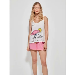 - jednobarevné šortky s potiskem Snoopyho a nastavitelným pasem s gumou a mašlí