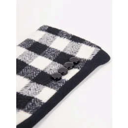 Elegantní, ženské rukavice. V bílé a černé barvě. Ideální pro každodenní i elegantní styling. S kostkovaným vzorem na horní části a ozdobnými knoflíky. Materiál vhodný pro dotykové ovládání na konečcích ukazováčků i palců. Pružné pro přiléhavé nošení. Vnitřní strana polstrovaná měkkou tkaninou na dotek.