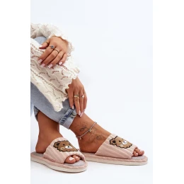 Dámské pantofle vyrobené z textilního materiálu. Vsazené na ploché, gumové podrážce. Vepředu jsou nasazeny medvídci. Otevřené špičky. Ideální na relaxaci v domácím útulku! Při výběru velikosti se řiďte tabulkou velikostí.