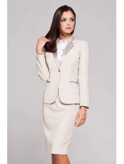 Dámské elegantní sako M154 FIGL ozdobené lesklým límečkem, klopy a kapsami. Sako má dlouhé rukávy a zapíná se na jeden knoflík. Sako je vyrobeno z příjemného materiálu, který se nemačká.