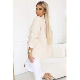 Dámské sako 588-2 Numoco basic - béžová barva - z hladkého materiálu - dlouhé nařasené rukávy - s podšívkou a ramenní vycpávky - falešné kapsy zdůrazňují minimalistický design