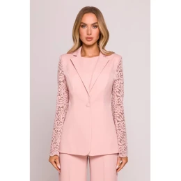 Dámské sako s krajkovými rukávy model 21857561 Pudr růžová - Moe