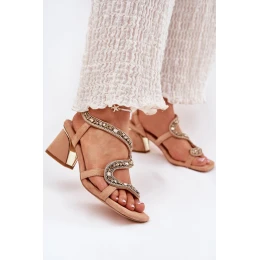 Elegantné dámske sandále z ekologického semišu sú výnimočnou voľbou na špeciálne príležitosti. Sú osadené na stĺpcovom podpätku so zrkadlovým prvkom. Model je vybavený pôsobivou kryštálovou ozdobou, ktorá vytvára jedinečný hadí vzor, priťahuje pozornosť a dodáva výnimočný charakter. Tieto sandále sú ideálne na večerné vychádzky, budú dokonalým stylingovým doplnkom na rôzne oslavy a spájajú módny dizajn s elegantným prevedením. Pri výbere veľkosti sa riaďte tabuľkou veľkostí.