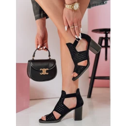 Kobiece sandały z zamszowej tkaniny, które dodają uroku każdej stylizacji. Wyprofilowana podeszwa i stabilny 8-centymetrowy słupek zapewniają wygodę chodzenia, a delikatne perforacje w cholewce nadają lekkości i nowoczesnego wyglądu. Regulowane zapięcie ułatwia dopasowanie, dzięki czemu sandały idealnie sprawdzą się zarówno na co dzień, jak i na wyjątkowe okazje.