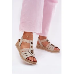 Sandały Damskie Na Koturnie Z Ozdobami Inblu RV000015 Jasnobeżowe