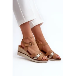 Sandały Damskie Na Koturnie Z Plecionką Brązowe Starlenna