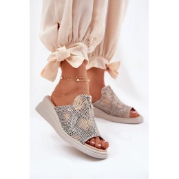 Klapki Damskie Na Koturnie Z Zamkiem Zwierzęcy Wzór Beżowe Irriva