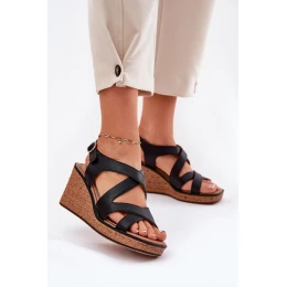 Sandały Damskie Na Koturnie Sergio Leone SK223 Czarne