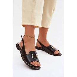 Dámské sandály na nízkém podpatku s ozdobou model 22133704 Černé - S.Barski