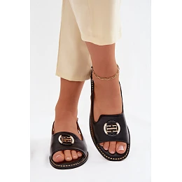 Dámské sandály na nízkém podpatku s ozdobou S.Barski KV61-6037 Černé