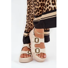 Sandały Damskie Na Platformie I Koturnie Z Klamrami Beżowe Genorre
