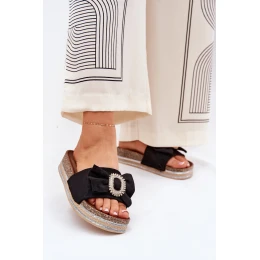 Klapky vyrobené z eko semiše. Vpředu mašle a ozdobná brož. Umístěné na platformě s třpytkami, které do každého stylu vnáší kousek lesku a elegance. Tyto klapky budou skvělou volbou na letní dny, dokonale se hodí k šatům, sukním nebo kraťasům, dodávají každému vzhledu moderní akcent. Při výběru velikosti se řiďte tabulkou velikostí.