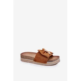Klapki Damskie Na Platformie Z Kokardką I Ozdobną Broszką Camel Lenela