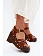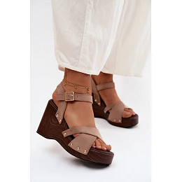 Dámské sandály na platformě se zlatými přezkami Béžové Velvra