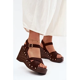 Dámské sandály na platformě se zlatými přezkami Čokoládové Velvra