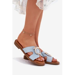 Dámské sandály na plochém podpatku s ozdobou model 21697150 Modré - VINCEZA