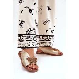 Dámské sandály na plochém podpatku se zdobením zlaté model 21686846 - Boto