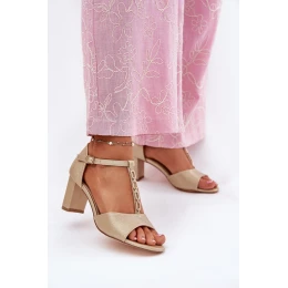 Dámské Sandály Na Podpatku S Dekorativním Páskem Eko Kůže Zlaté model 21696870 - EVENTO