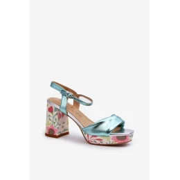 Dámské sandály na podpatku s květinami D&A model 21660335 modré - S.Barski