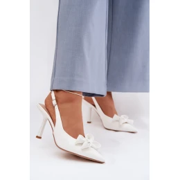 Dámské sandály na podpatku s mašlí bílé model 22027969 - Boto