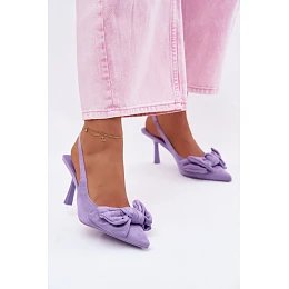 Dámské sandály na podpatku s mašlí fialové model 22107359 - Boto