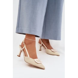 Dámské sandály vyrobené z kombinace eko kůže a syntetického materiálu jsou stylovým doplňkem pro ženské outfity. Špičaté nosy zdůrazňují štíhlou linii nohy a dodávají modelu elegantní charakter. Obuv je osazena na tenkém podpatku, který jemně prodlužuje siluetu a dodává chůzi lehkost. Zapínání na přezku s nastavitelým páskem umožňuje přizpůsobení na noze, zajišťuje pohodlí a stabilitu. Dekorativní prvek vpředu přitahuje pozornost a tvoří efektní detail, díky čemuž jsou sandály ideální na elegantní výlety a zvláštní příležitosti. Při výběru velikosti se řiďte tabulkou velikostí.