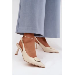 Dámské sandály na podpatku s ozdobným detailem světle béžové model 22027892 - Boto
