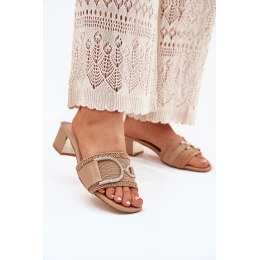 Dámské Sandály Na Podpatku S Ozdobným Detalem Tmavě Béžové model 21699808 - Boto