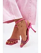 Dámské sandály na podpatku s pásky a kamínky fuchsiové Chiara