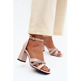 Dámské sandály od značky Vinceza jsou elegantní volbou vhodnou na různé příležitosti. Vyrobené z eko kůže. Stabilní podpatek ve tvaru sloupu zajišťuje pohodlí při chůzi a zároveň jemně zvýrazňuje siluetu. Zapínání na sponu umožňuje přizpůsobení tvaru nohy a zvyšuje komfort nošení. Přední část zdobí dekorativní pásek ve tvaru copu zdobený cyrkony, který přitahuje pozornost a dodává celku efektní, ženský charakter. Ideální na večírky, večerní výlety a svatby. Při výběru velikosti se řiďte tabulkou velikostí.