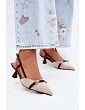 Elegantní dámské sandály vyrobené z vysoce kvalitní ekologické kůže jsou ideální volbou pro ženy, které ocení styl a jemnou ženskost. Model se vyznačuje špičatými, zakrytými nosky, které dodávají celku eleganci a opticky zeštíhlují nohu. Umístěny na nízkém, úzkém podpatku, zajišťují pohodlí po celý den a zároveň zdůrazňují elegantní charakter obuvi. Zapínání na sponu s nastavitelným páskem umožňuje dokonalé přizpůsobení noze a ozdobný detail vpředu tvoří stylové zakončení. Při výběru velikosti se řiďte tabulkou velikostí.