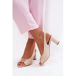 Dámské sandály na podpatku s zlatým detailem Béžové Lotus