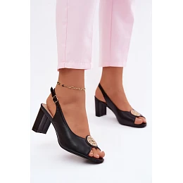 Dámské sandály na podpatku se zlatým detailem Černé Lotus