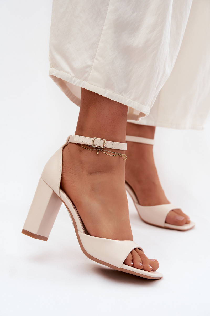 Dámské sandály na podpatku z imitace kůže světle béžové Melvra