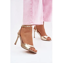 Dámské sandály na podpatku z imitace kůže zlaté Olissey